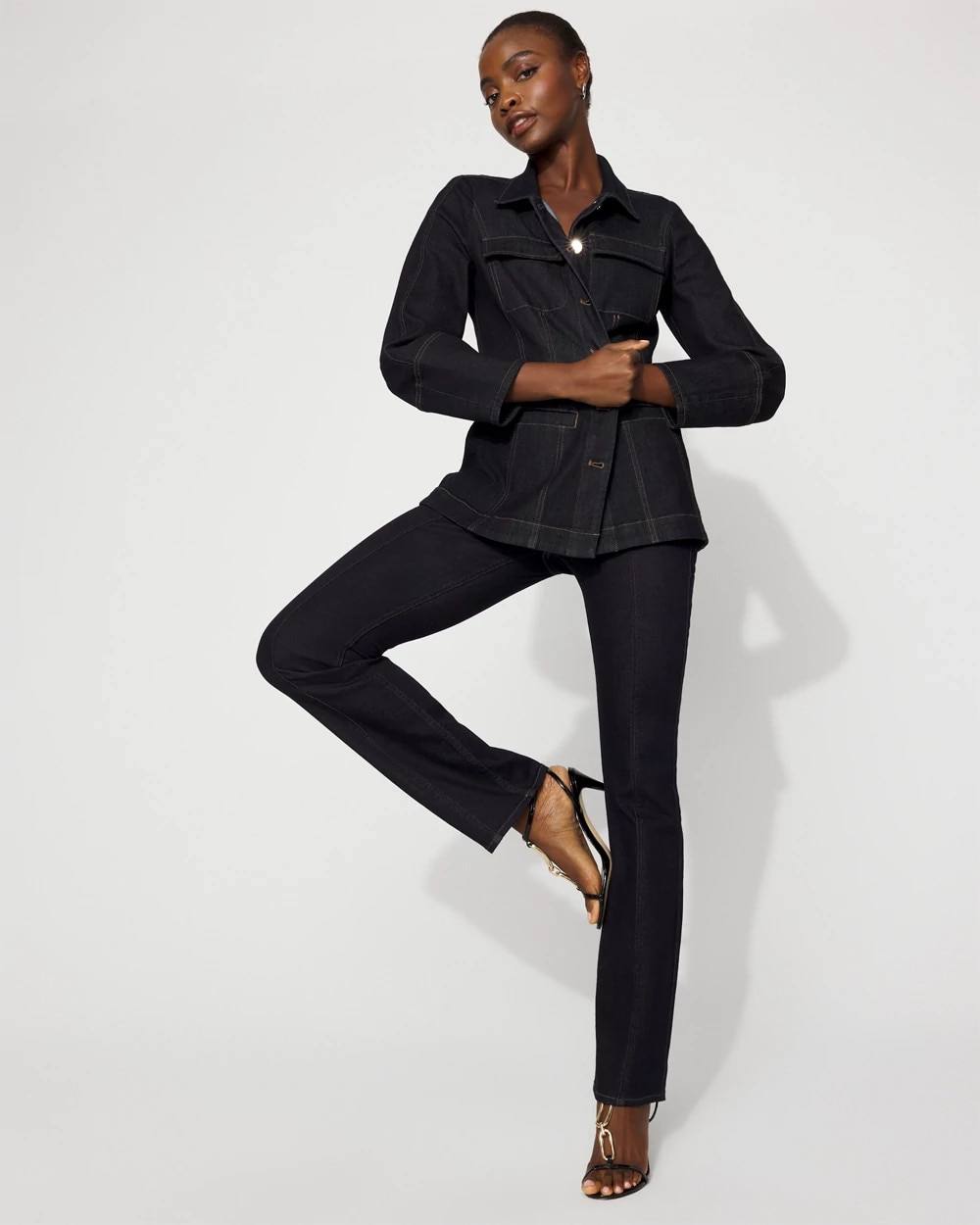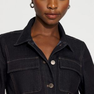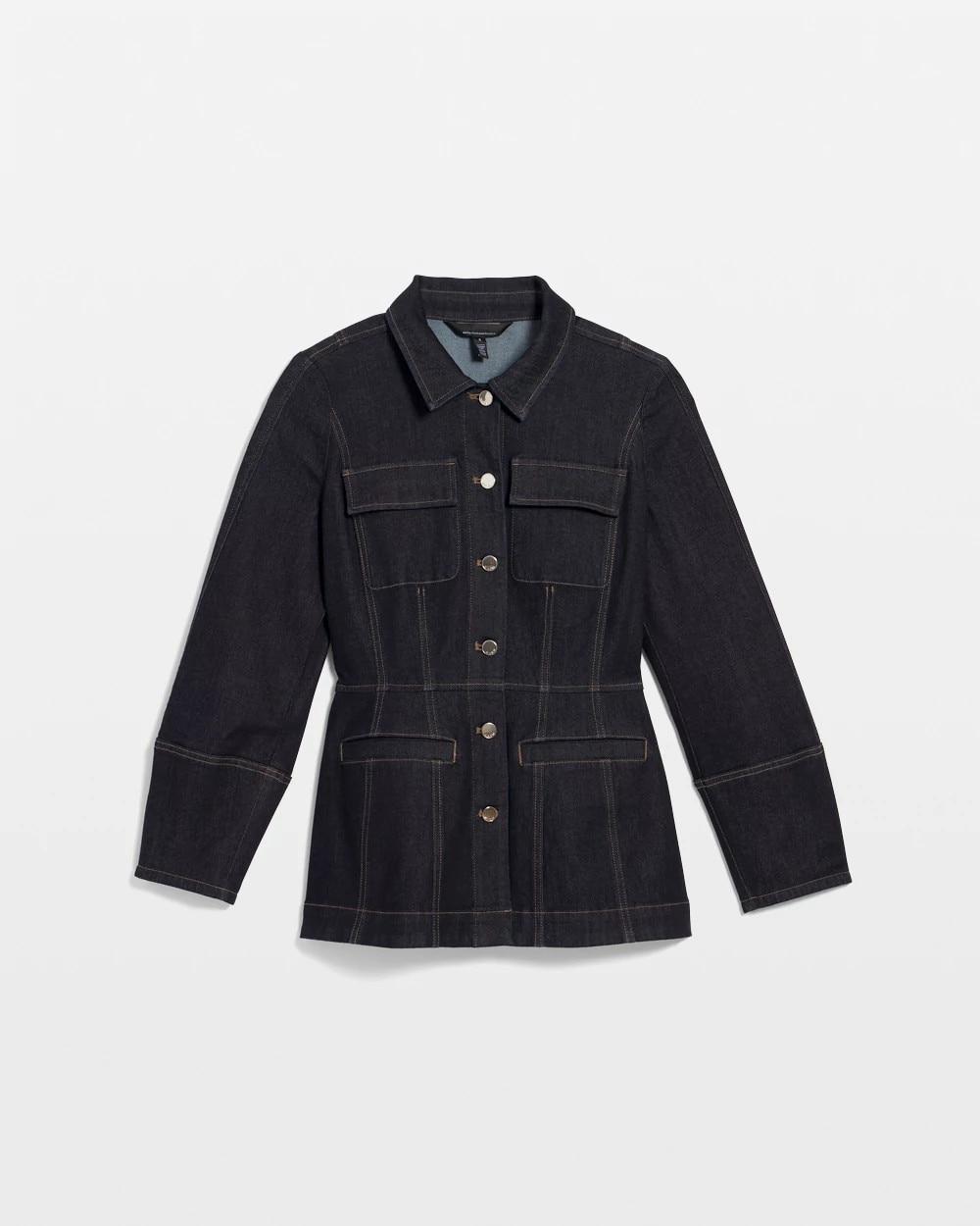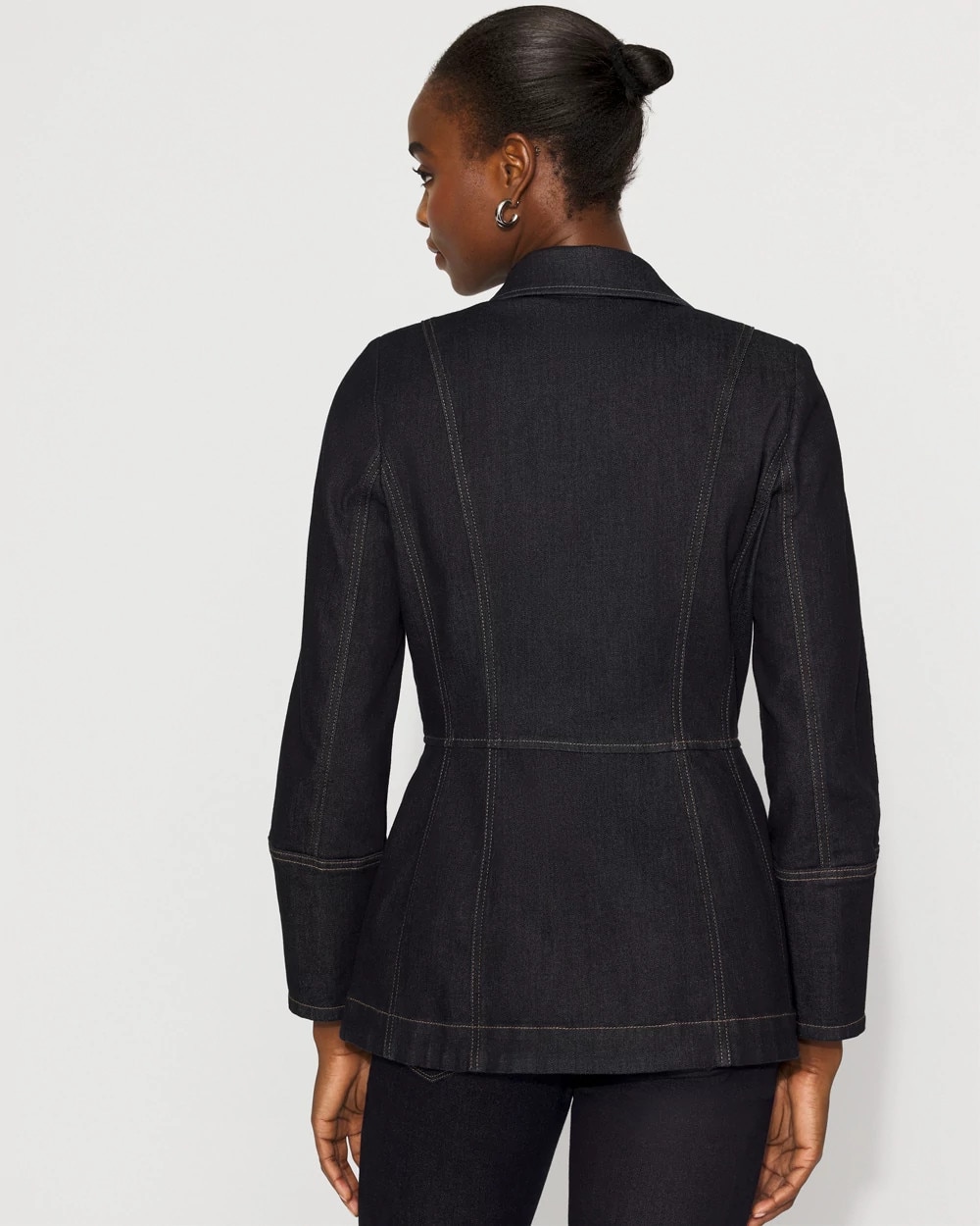 Consider this the denim jacket, elevated. With a flattering tapered waist, corset seam details and dramatic balloon sleeves, this topper will work with casual and polished outfits. With two flap chest pockets and two front welt pockets, this jacket has a six-button closure.