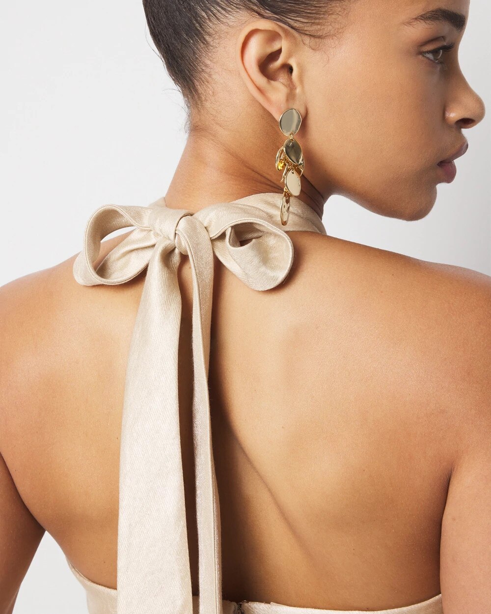 Your favorite halter top in jumpsuit form. Designed with a wide-leg pleated pant silhouette, this jumpsuit is made from a lightweight twill fabric. The crossover halter top has a keyhole front. The self-covered belt and belt buckle finish the look.