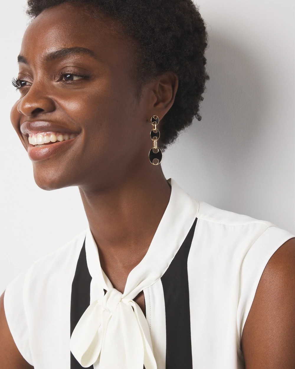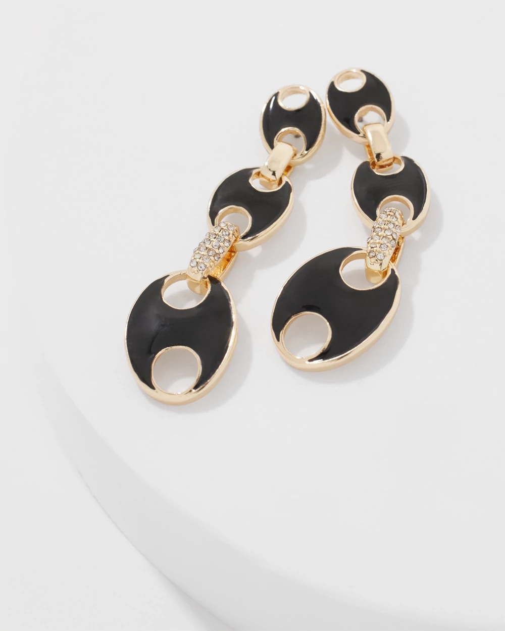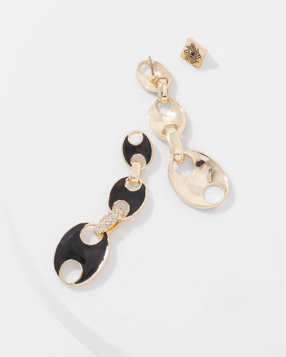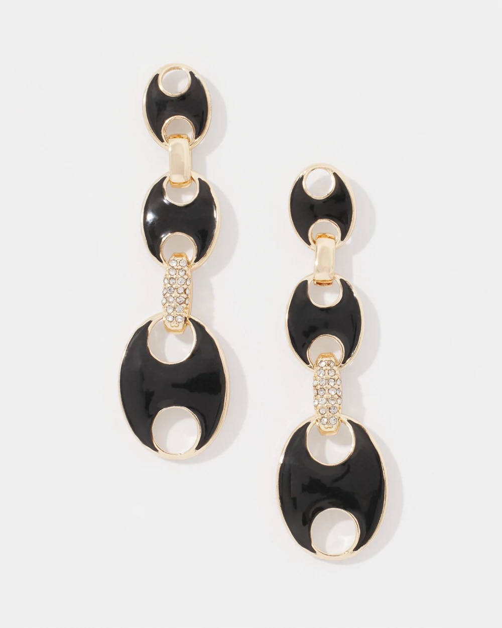 Black mariner links interlock with pavé and gold links to create these stunning linear earrings. Pair with matching Black Mariner Links Necklace and bracelet.