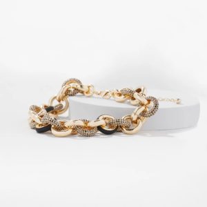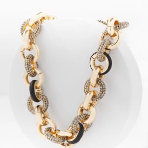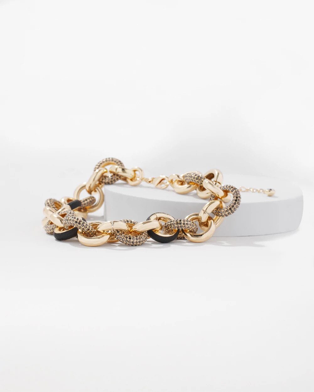 This statement necklace has intertwining links of black leather, pavé and gold to create a stunning piece you’ll wear over and over. Mix with other pieces in the Textured Inlay Collection.