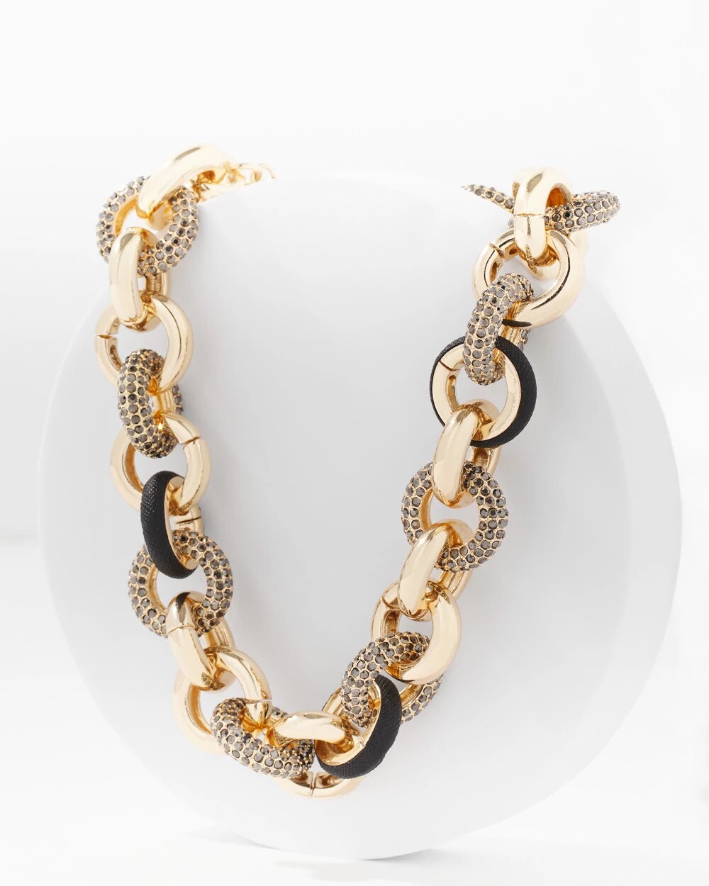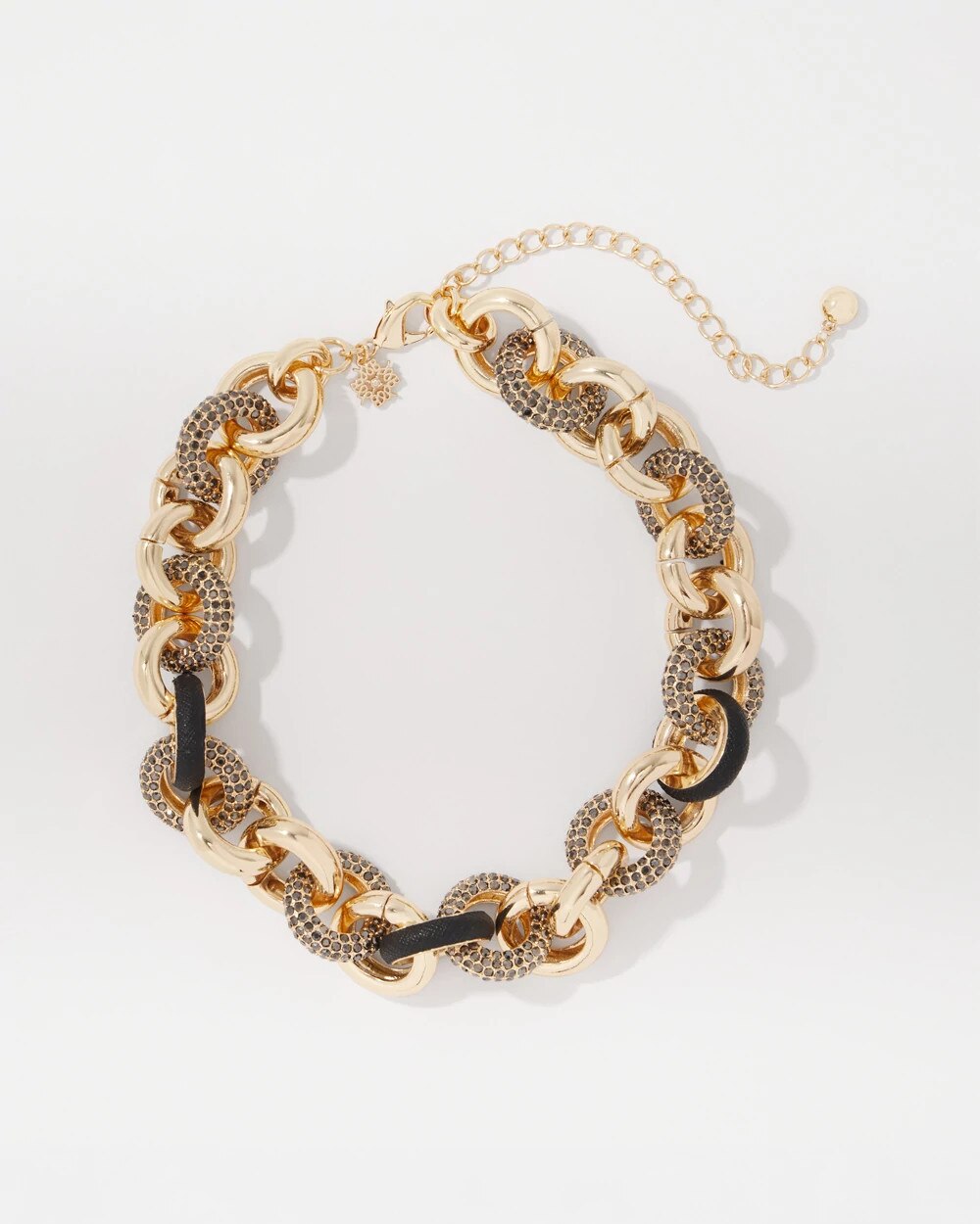 Black Textured Leather + Pavé Link Necklace