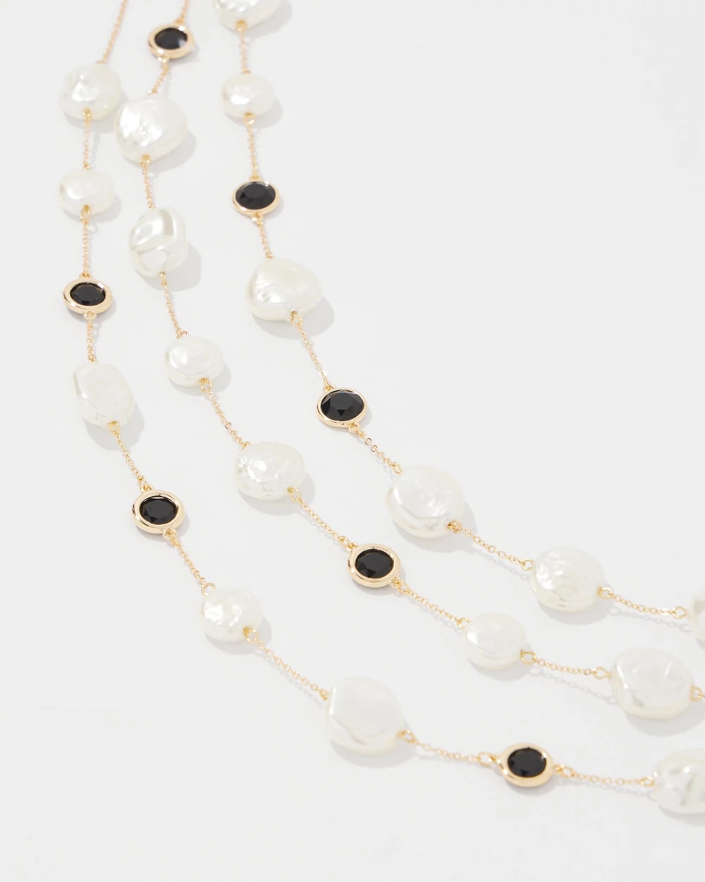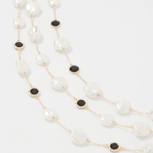 The mix of black crystals and faux white pearls level up your accessory game. Mix and match with other pieces from our Baroque Pearl Collection.