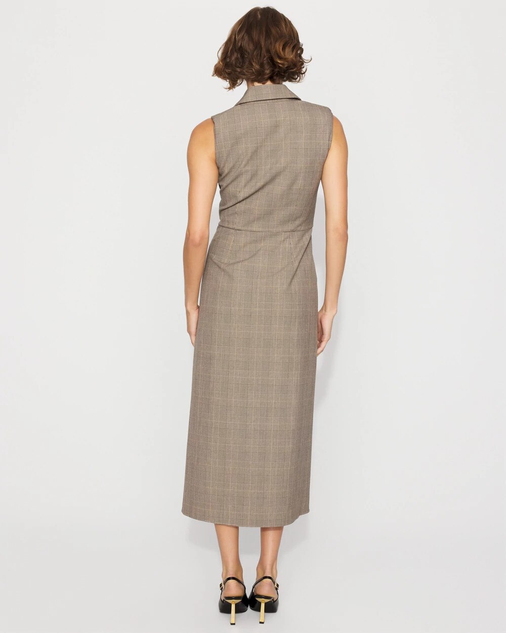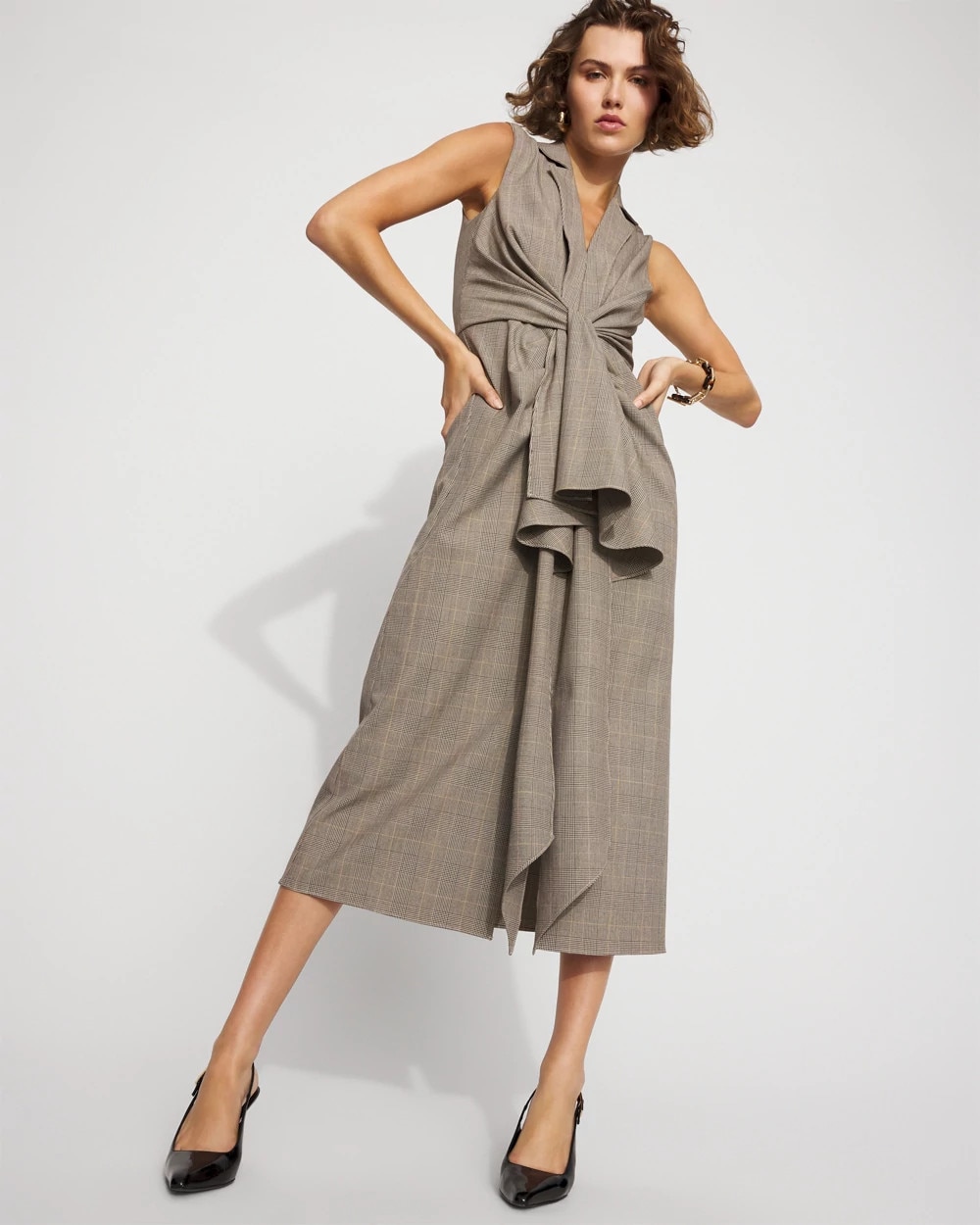 This dress means business! Taking inspiration from menswear, we’ve designed this dress with the look of a classic plaid blazer, but in a sheath dress silhouette. The faux wrap front and ruching details keep it feminine. Wear it to the office in your favorite heels or flats.