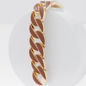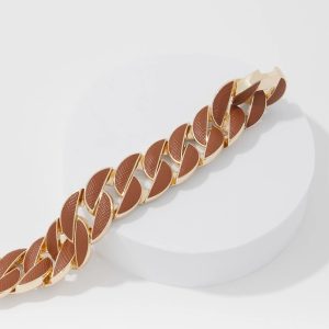 Cognac Textured Leather Link Bracelet
