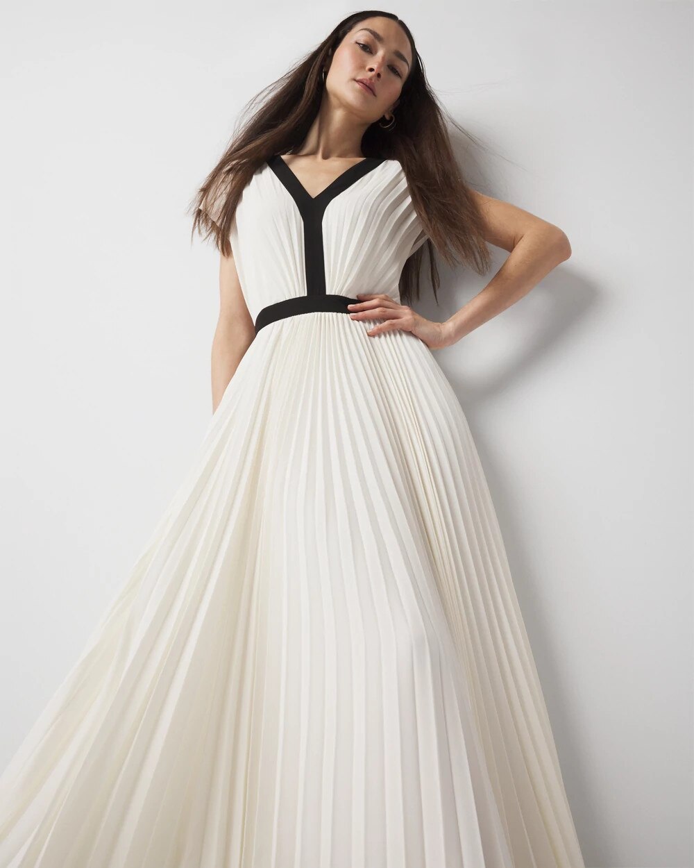 Spring formals and other posh events call for something extra, and this pleated maxi dress has all the right moves to make an entrance. The skirt flows and floats as you walk (and dance), while the contrasting trim adds a modern graphic detail. We also love that the banded contrast at the back is strategically placed to hide your bra strap (yes, you can wear one).