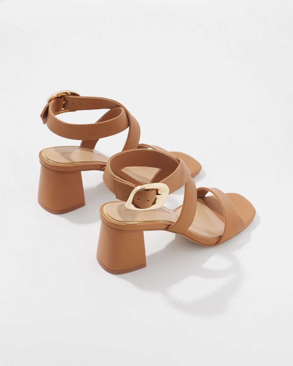 This timeless mid-heel sandal is designed with a wide strap that crosses over at the arch, with a single wide strap over the toes. A chic champagne metal buckle adds visual interest. A great shoe for cropped pants and dresses.