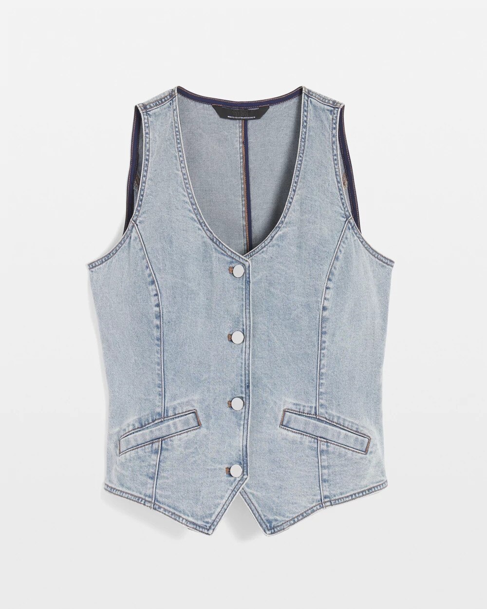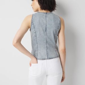 This denim vest is designed to go with your favorite wide leg jeans for a head-to-toe look. Made with seam details and front pockets, it’s also a versatile piece you can pair with shorts.