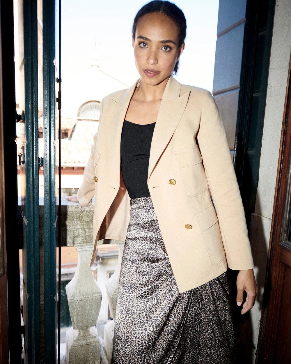 Your new fall blazer is here, and we’ve designed it with the on-trend utility details you love. Made from a soft, lyocell-blend twill fabric, it has gold crest buttons for closure and at the cuffs, and four cargo patch pockets. Seaming details in the back ensure a flattering fit. For a complete look, wear it with our coordinating Casual Wide-Leg Cropped Pant.