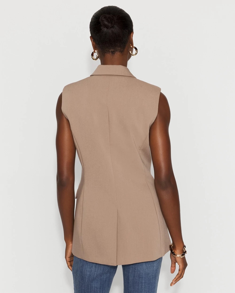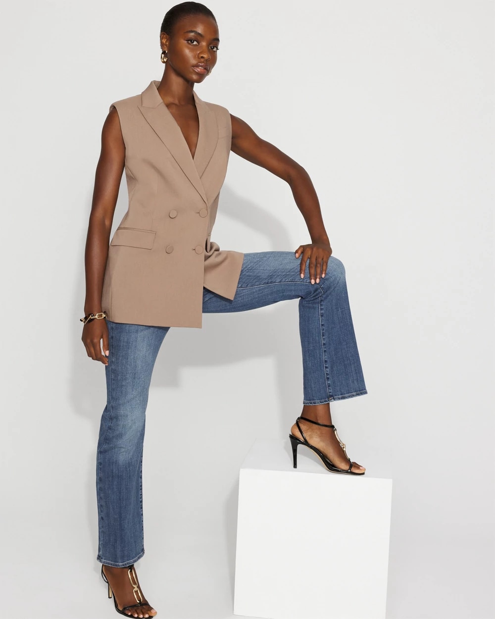 We love the versatility of a vest because it looks as chic over a poplin shirt, long-sleeve tee or on its own. Cut from our popular luxe double weave fabric, this vest feels as good as it looks. Wear it open or closed, and try it with the matching Elle Slim Ankle Pant.