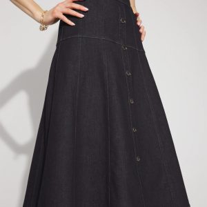 Drop Waist Denim A-Line Midi Skirt