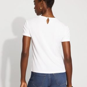 Crafted from luxe brushed rib fabric that’s comfortable but still refined, this timeless tee has a faux pearl button closure at the back of the neck. It’s a subtle, feminine touch we know you’ll love.
