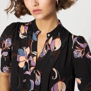 A simple + stylish shirt for work, it is designed with elbow sleeves, a Y-neckline and shirt cuffs. Wear it with your favorite black pant.