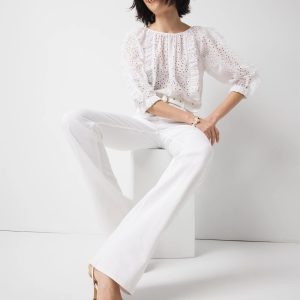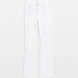 These jeans are a stylish nod to the 70s with a wide self-belt with a gold rectangular buckle and grommets. Ideal to wear with wedges or strappy sandals.