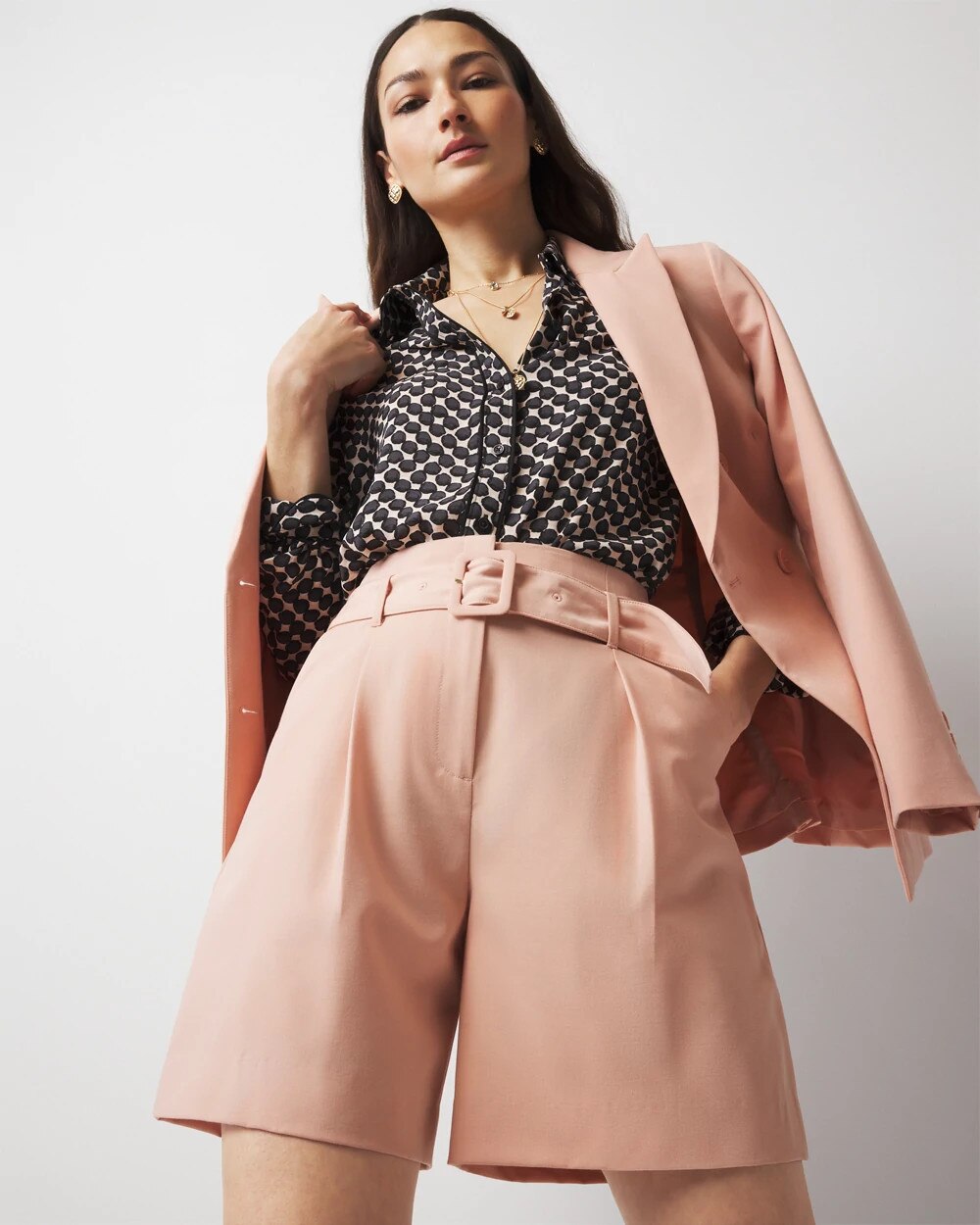 These pleated shorts are cut from a fluid woven fabric that has a flattering drape. With an extra high-rise and belted waist, these tailored shorts have a polished look that’s suitable for the office and elegant enough for date night.