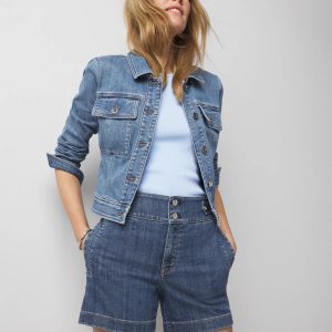 Extra High-Waist Novelty Button Denim Shorts