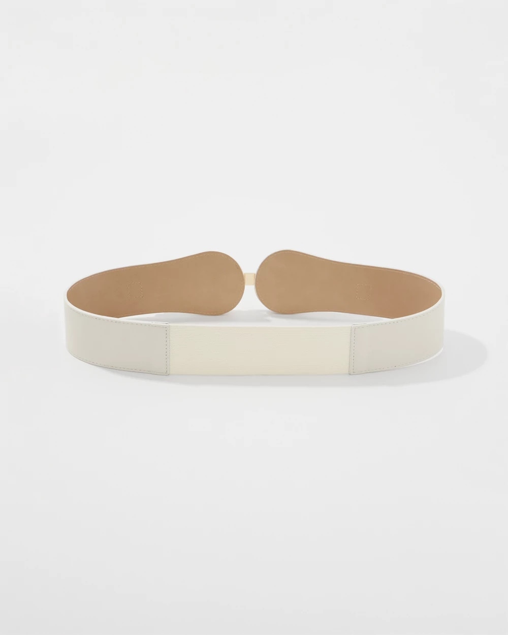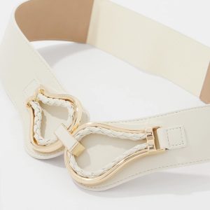 This wide stretch waist belt is a simple style update for dresses and longer tops or shirts. Designed with braided faux leather and gold hardware details that come together in a front hook closure.