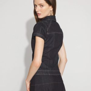 Not your average jean jacket, this flirty denim topper has fluttery cap sleeves, soft gold buttons and an elevated dark rinse with contrast stitching. Great to wear over a tee, but we love this with dresses too.