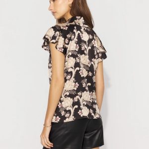 Gold buttons add a touch of shine to this feminine satin shirt. We’ve also given it flutter sleeves and a flattering Y-neckline. A stylish top to wear with pants to the office, or with a pair of jeans out to dinner .