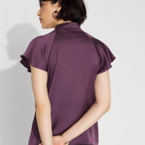 Gold buttons add a touch of shine to this feminine satin shirt. We’ve also given it flutter sleeves and a flattering Y-neckline. A stylish top to wear with pants to the office, or with a pair of jeans out to dinner .