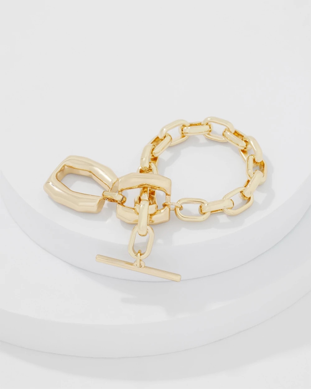 Abstract links form this cool sculptural chain bracelet. Adjust the length with the toggle to create a charm effect that instantly elevates tees or dresses. Pair with earrings from the Sculptural Links Collection.