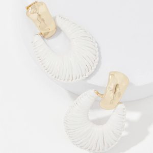 Hammered gold and ecru raffia give these drop earrings an artisanal look. Pair with other pieces from our summer collection.