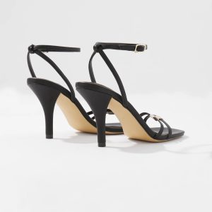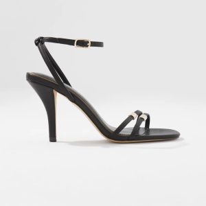 Instantly add glam to your dresses or wide leg pants and denim with these high heel sandals with ankle straps. Made with gold hardware on the straps for added shine.