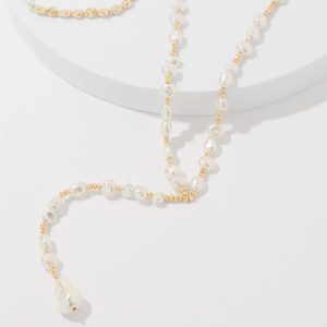 This accessory is as versatile as it is elegant. Designed with faux pearl and gold, this Y necklace converts to 3-single strands. Layer them together for a statement piece, or wear separately. Mix and match with other pieces from our Baroque Pearl Collection.