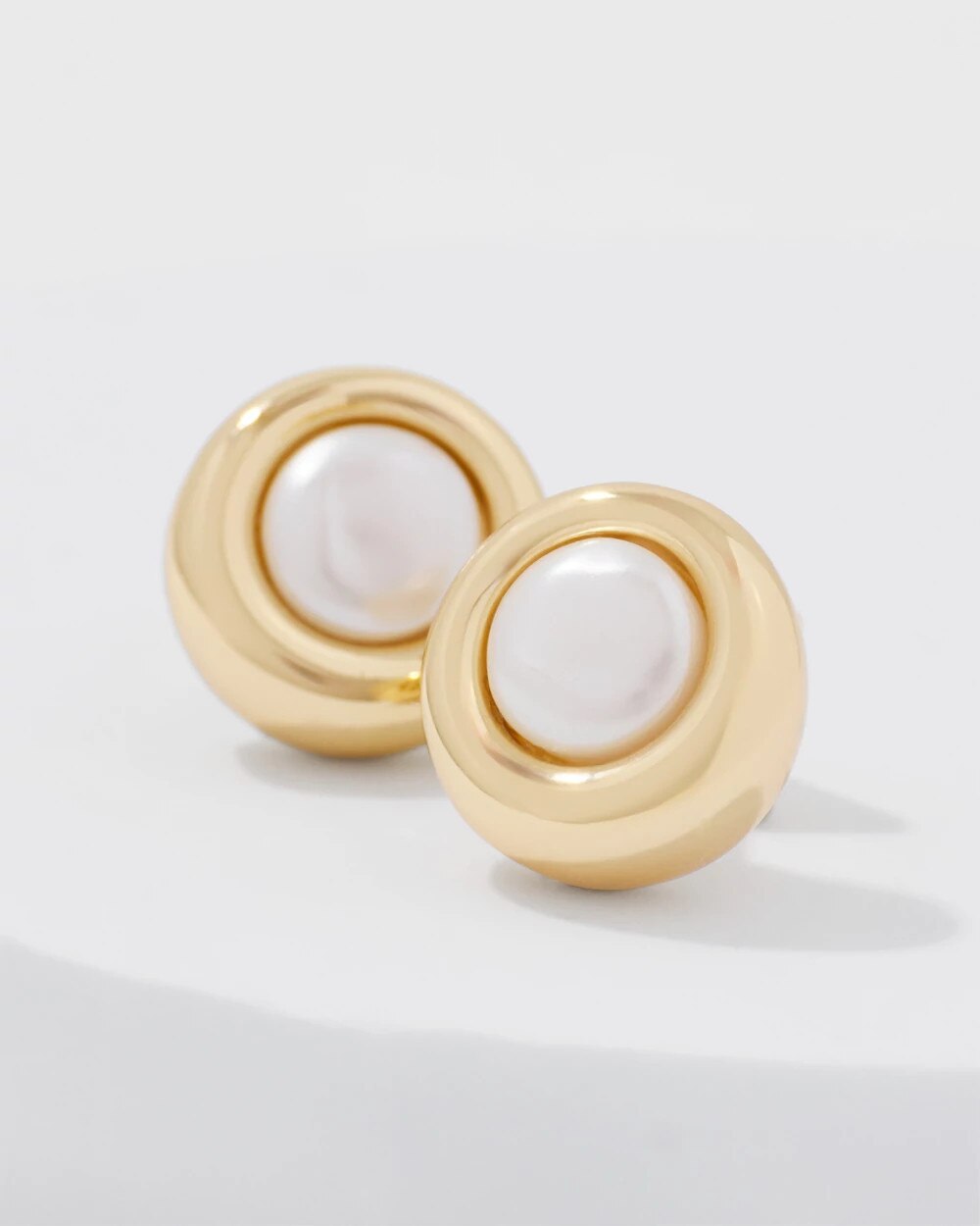 These timeless stud earrings have a faux pearl center ringed with gold metal. An easy and subtle way to add polish to your outfit.