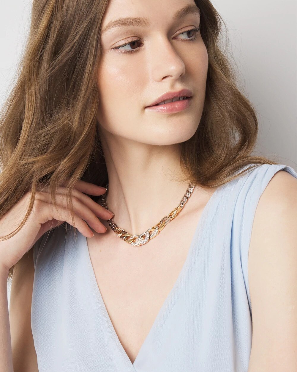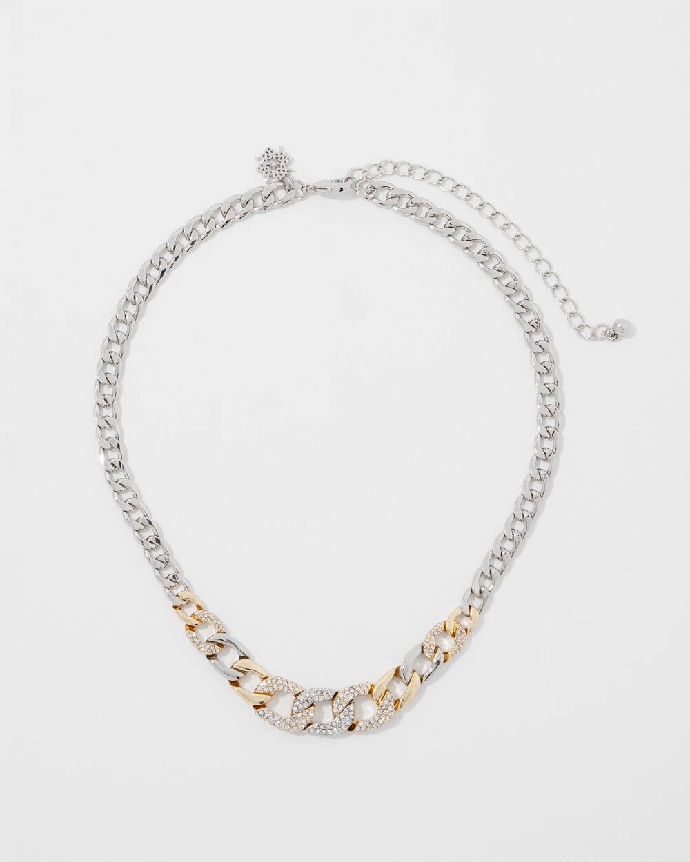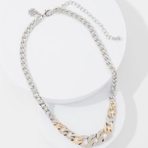 This single-strand necklace has a mix of gold, silver and pavé links that create a simple, yet stunning design. Pair with other pieces in the Mixed Metal Collection.