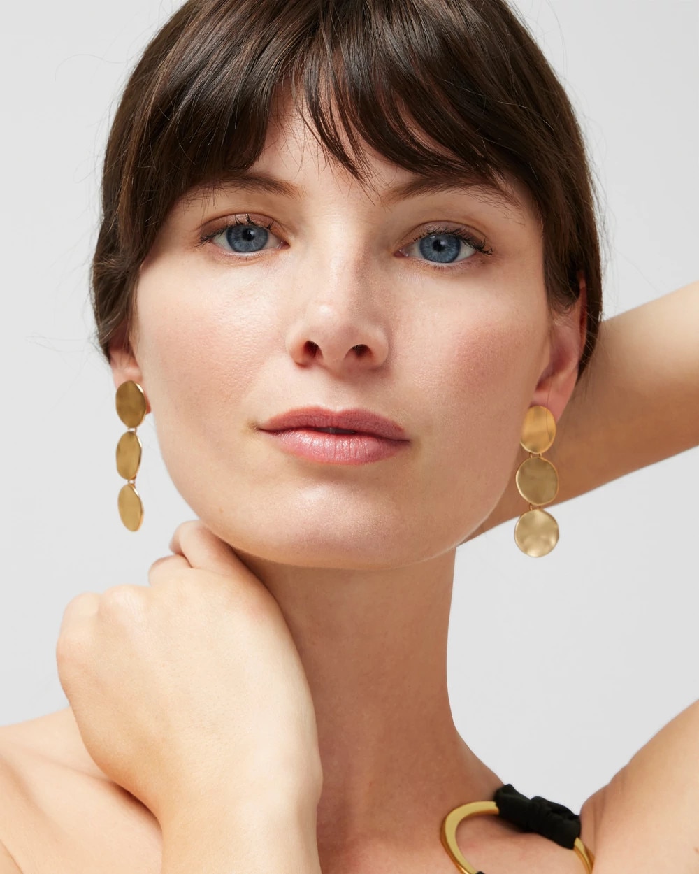 Goldtone Wavy Disc Linear Earrings