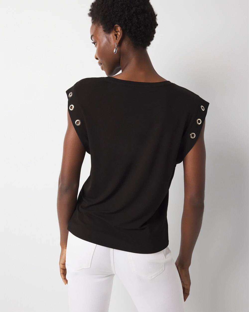 Refresh your t-shirt wardrobe with this scoop neck top with grommet details on the cuffs. A great look for denim or shorts.