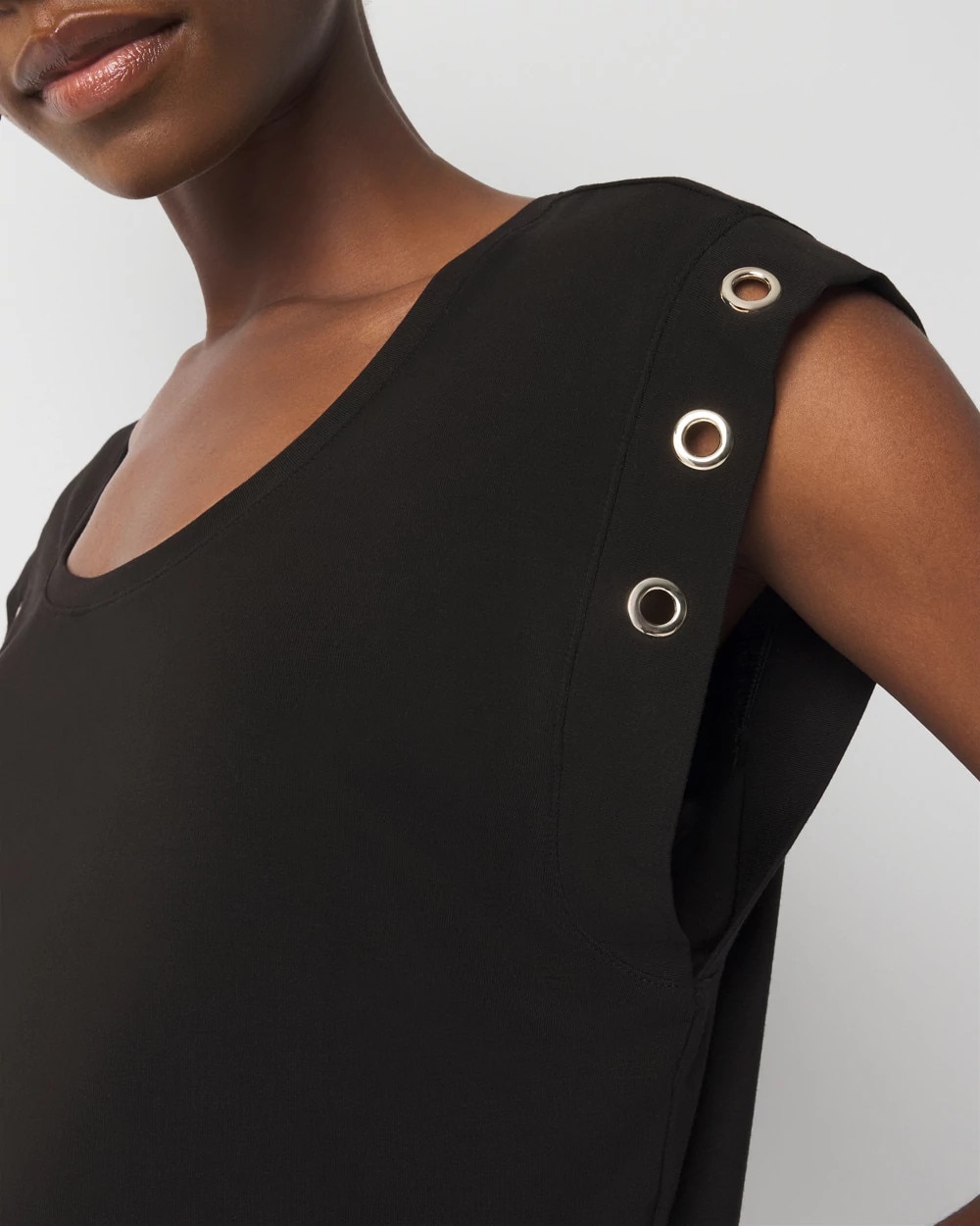 Grommet Cuff Scoop Neck Tee