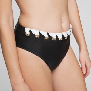 High-waisted with decorative lace-up grommet details on the waist, the Grommet Lace-Up Bottom will turn heads. Show it off when paired with a solid top or the matching bikini top.
