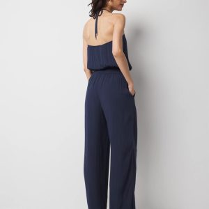 Summer beach season calls for a chic cover up. Look no further than this halter style jumpsuit with O-ring hardware. Made from a crinkle viscose fabric with an elastic waist for ease, this coverup is sheer + lightweight, a perfect look to go from beach to brunch to bar.