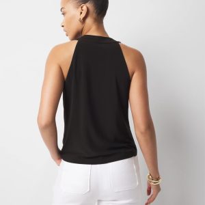 Made from soft matte jersey, this cowl neck tank has hardware on one shoulder for added sophistication. Pair it with matching pant for head-to-toe chic.
