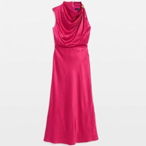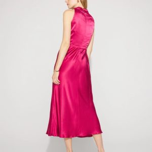 High-Neck Satin Midi Dress