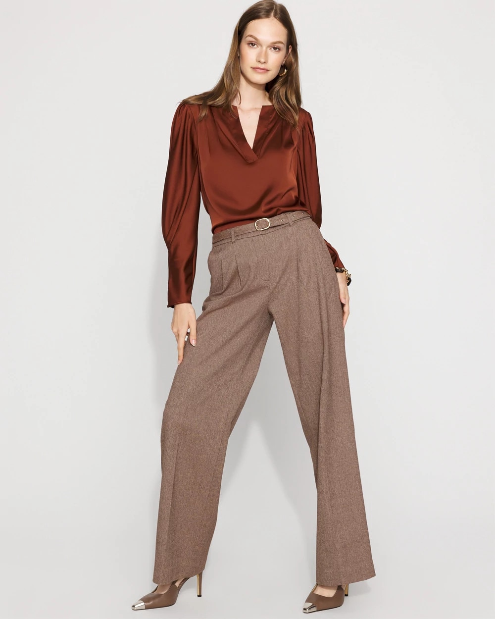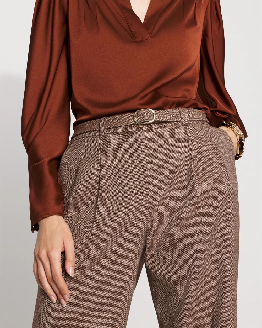 High-Rise Belted Tweed Wide-Leg Pant
