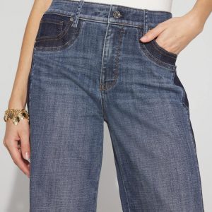 Indigo panels down the side seams and front pockets create a retro look that’s very on-trend. We also heard you on our inseam and we’ve shortened our regular length, while keeping the short and long lengths you love. These wide-leg jeans are the ideal length to pair with heels or boots.