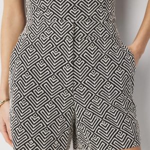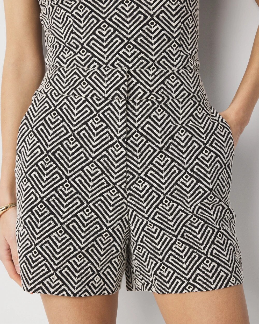 These shorts are embroidered in a bold geometric pattern that match back to a bustier top for a cute summer outfit.