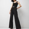 These elevated trouser jeans have gold chain hardware on the waistband for subtle shine as well as utility pockets in front. Wear with heels or wedges to elongate the leg.