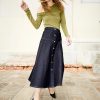 These elevated trouser jeans have gold chain hardware on the waistband for subtle shine as well as utility pockets in front. Wear with heels or wedges to elongate the leg.