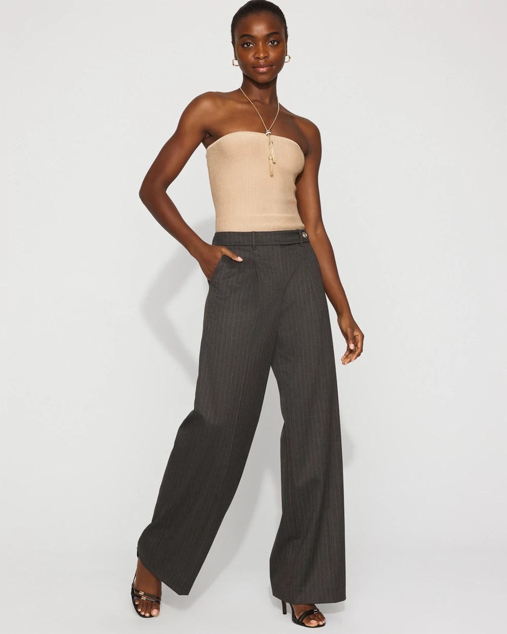 Taking inspo from classic menswear style, we designed these pinstriped wide-leg pants with front pleats and an extended tab closure on the waist.