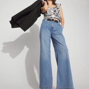 We’ve added pleating and an attached leather belt to these wide-leg jeans for a more polished + easy-to-wear look. Front slash pockets and back welt pockets add to the tailored vibe. We also heard you on our inseam and we’ve shortened our regular length, while keeping the short and long lengths you love. Dress up with heels or boots.