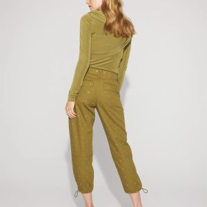 Part of our Pret Collection, this relaxed ankle pant has adjustable drawstrings on the cuffs as well as the cargo and patch pockets you covet. Allover silver studs embellish these pants for a hint of shine and added texture. Wear it with our Pret Studded Jacket for a complete look.