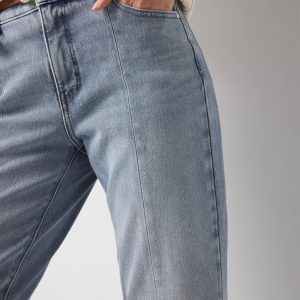 High-Rise Raw Hem Pintuck Straight Jean with Slit