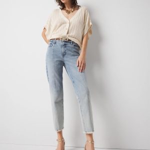 High-Rise Raw Hem Pintuck Straight Jean with Slit