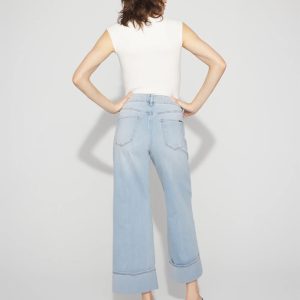 High-Rise Wide Leg Cuff Cropped Jean