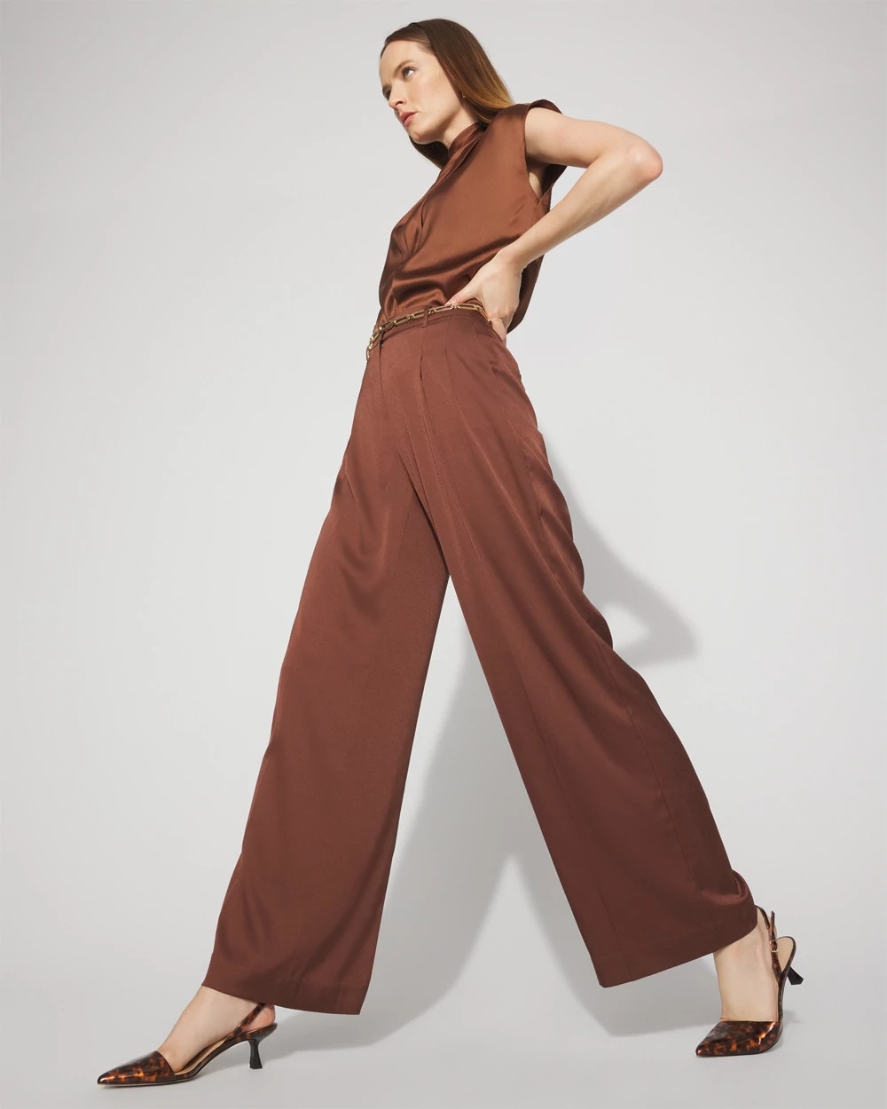 Jacquard Pleated Wide-Leg Pant