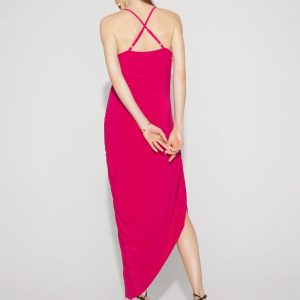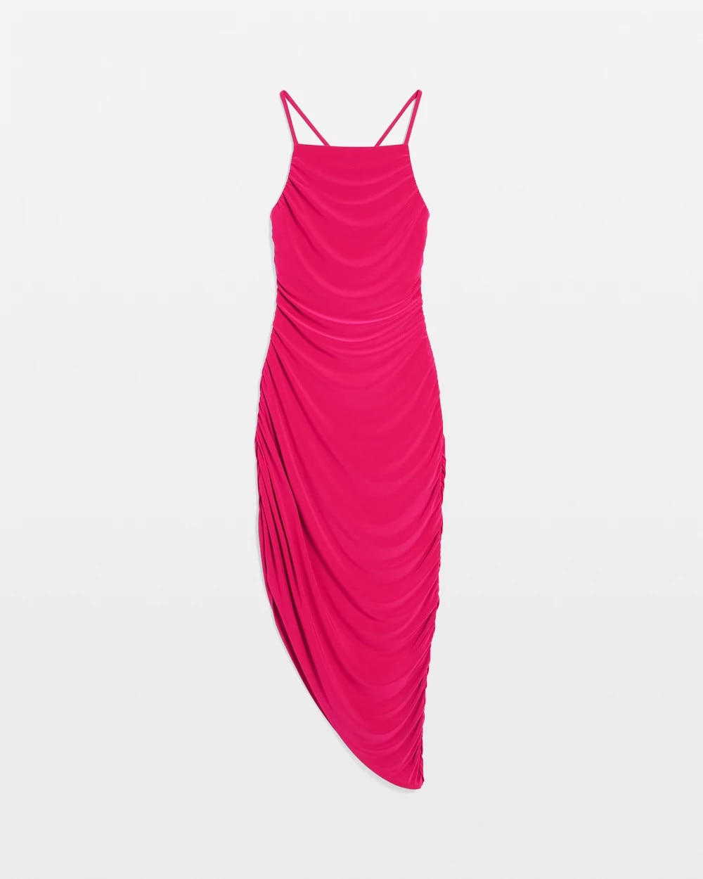 As party season ramps up, be ready with this bodycon number that shows off your curves. Designed with side ruching to hug the body and an asymmetric hem that reveals some leg, this midi dress also has straps that crossover in back. A slinky + sophisticated look for events.