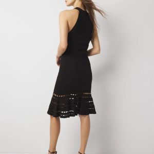 This flirty halter dress has a keyhole cutout at the bust and cutout work at the hem. A classic bodycon look for a special night out.